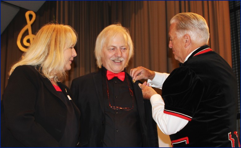 Der letztjährige Preisträger Hermann Studer durfte dem Ehepaar den Goldenen Violinschlüssel anstecken